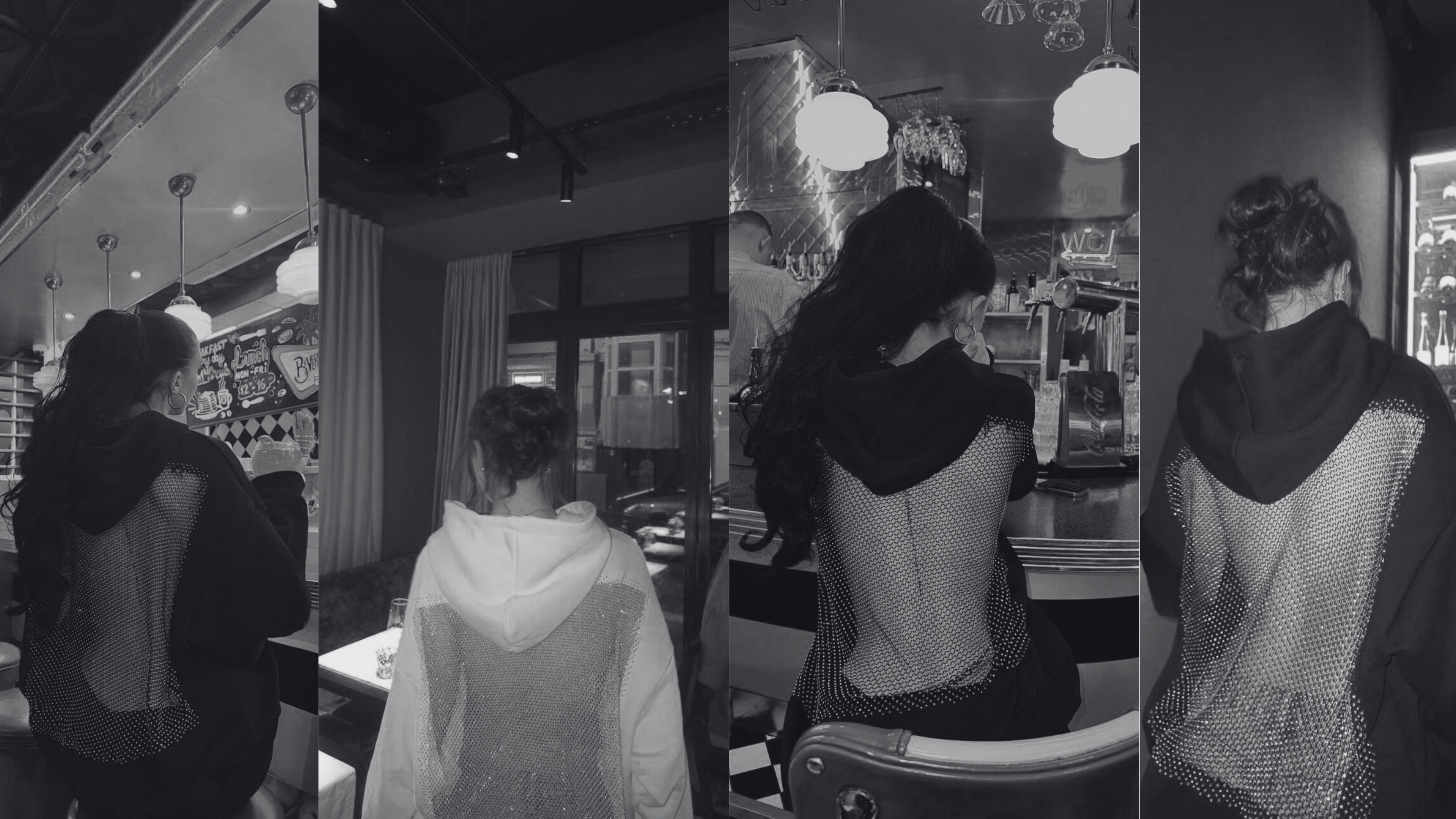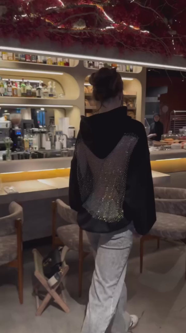 Each hoodie is crafted with over 8,000 rhinestones, placed by hand.